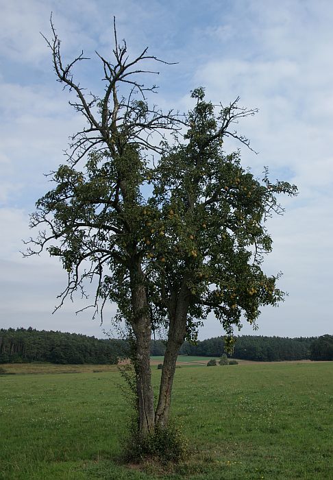 Des is a schener alter Birnbam in der Wiesn vo meim Nachbern. Manchmol hat er scho geschimpft iber den Storrn, doch a heier blieht er wider.